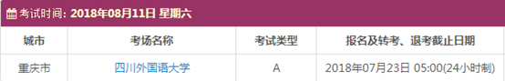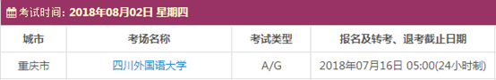 以上,就是上海新航道雅思小编为大家整理的关于2018年8月重庆雅思考点的考试时间、考位以及考场信息。了解更多2018年雅思考点详情,请点击雅思考试频道 。