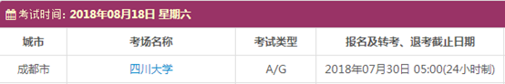考试时间:8月11日(A)、8月18日(A/G)、8月25日(A)