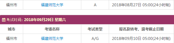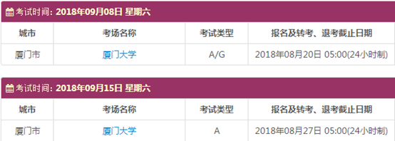 考试时间:9月8日(A/G)、9月15日(A)