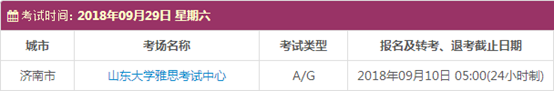 以上,就是上海新航道雅思 小编为大家整理的2018年9月山东雅思考点的考试时间、考位以及考场信息。了解更多2018年雅思考点详情,请点击雅思考试频道 。