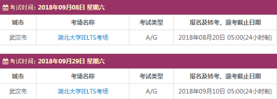 以上,就是上海新航道雅思 小编为大家整理的2018年9月湖北雅思考点的考试时间、考位以及考场信息。了解更多2018年雅思考点详情,请点击雅思考试频道 。