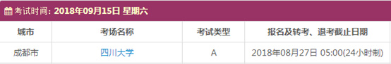 以上,就是上海新航道雅思 小编为大家整理的2018年9月四川雅思考点的考试时间、考位以及考场信息。了解更多2018年雅思考点详情,请点击雅思考试频道 。