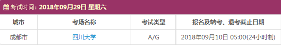 考试时间:9月8日(A/G)、9月15日(A)、9月29日(A/G)