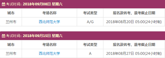 考试时间:9月8日(A/G)、9月15日(A)
