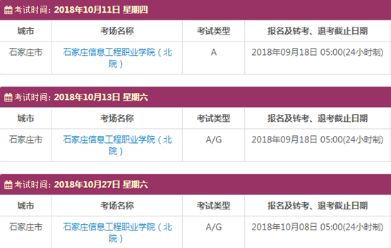 考试时间:10月11日(A)、10月13日(A/G)、10月27日(A/G)