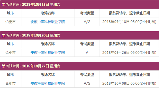 考试时间:10月13日(A/G)、10月20日(A)、10月27日(A/G)