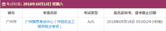 以上,就是上海新航道雅思 小编为大家整理的2018年10月广东雅思考点的考试时间、考位以及考场信息。了解更多2018年雅思考点详情,请点击雅思考试频道 。