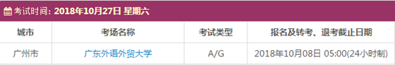 考试时间:10月11日(A)、10月13日(A/G)、10月20日(A)、10月27日(A/G)
