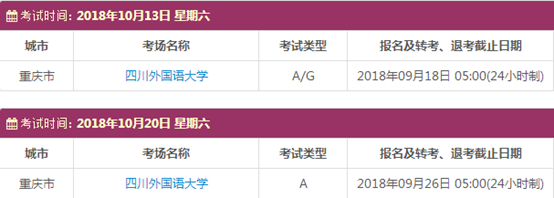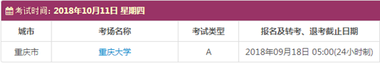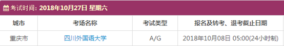 以上,就是上海新航道雅思 小编为大家整理的2018年10月重庆雅思考点的考试时间、考位以及考场信息。了解更多2018年雅思考点详情,请点击雅思考试频道 。