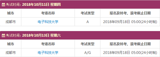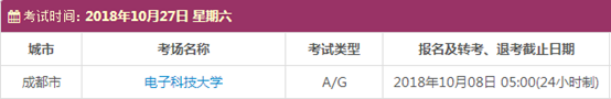 考试时间:10月11日(A)、10月13日(A/G)、10月20日(A)、10月27日(A/G)