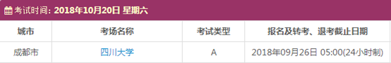 以上,就是上海新航道雅思 小编为大家整理的2018年10月四川雅思考点的考试时间、考位以及考场信息。了解更多2018年雅思考点详情,请点击雅思考试频道 。