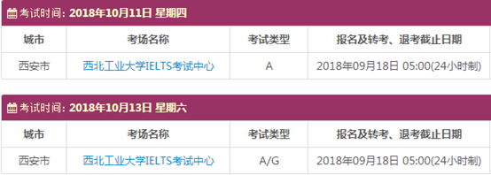 以上,就是上海新航道雅思 小编为大家整理的2018年10月陕西雅思考点的考试时间、考位以及考场信息。了解更多2018年雅思考点详情,请点击雅思考试频道 。