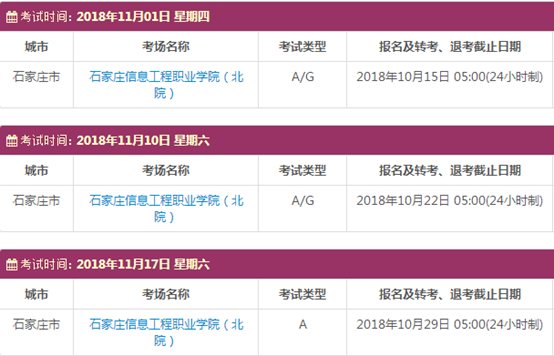 考试时间:11月1日(A/G)、11月10日(A/G)、11月17日(A)