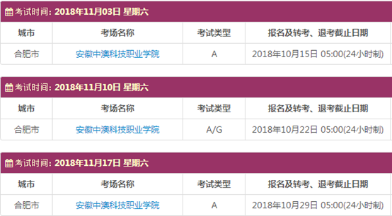 考试时间:11月3日(A)、11月10日(A/G)、11月17日(A)
