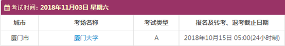 以上,就是上海新航道雅思 小编为大家整理的2018年11月福建雅思考点的考试时间、考位以及考场信息。了解更多2018年雅思考点详情,请点击雅思考试频道 。