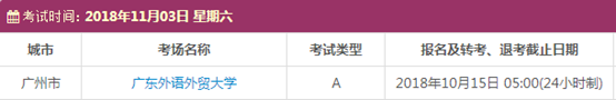 以上,就是上海新航道雅思小编为大家整理的2018年11月广东雅思考点的考试时间、考位以及考场信息。了解更多2018年雅思考点详情,请点击雅思考试频道 。