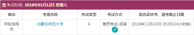 以上,就是我们为大家整理的2019年1月内蒙古雅思考点的考试时间、考位以及考场信息。了解更多2019年雅思考点详情以及上海雅思培训班收费怎么样 。