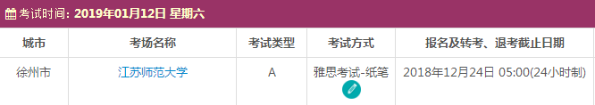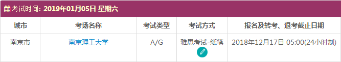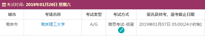 以上,就是上海新航道雅思小编为大家整理的2019年1月江苏雅思考点的考试时间、考位以及考场信息。了解更多2019年雅思考点详情,请点击雅思考试频道 。