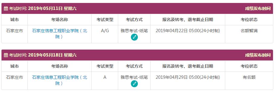 考试时间: 2019年05月11日 星期六 2019年05月18日 星期六