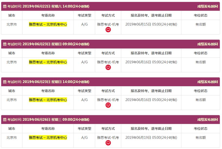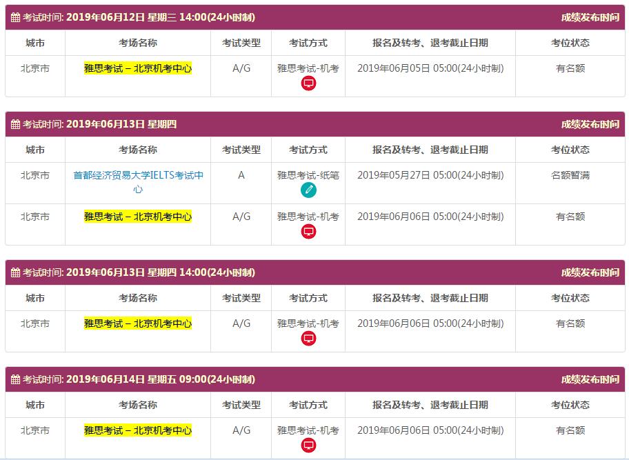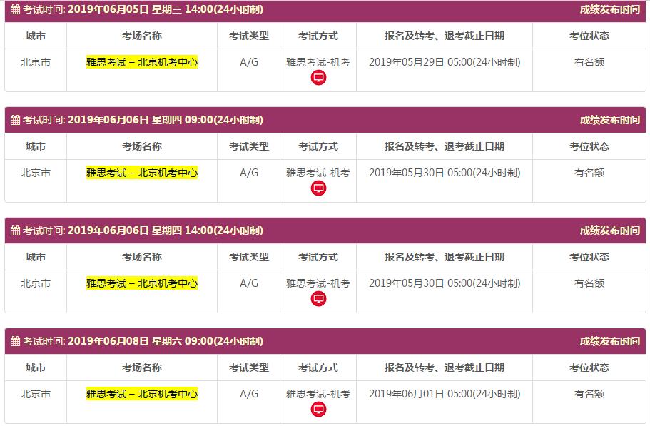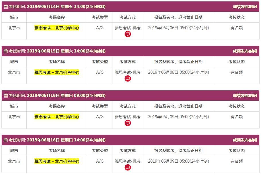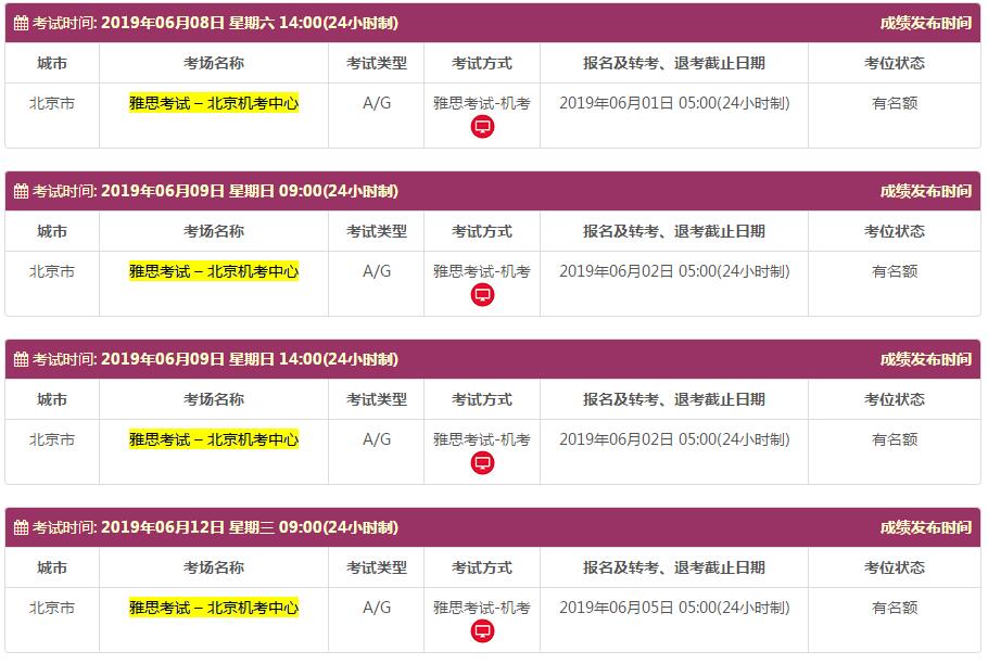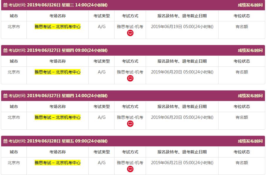 考试时间: 2019年06月01日 06月13日 06月22日 06月29