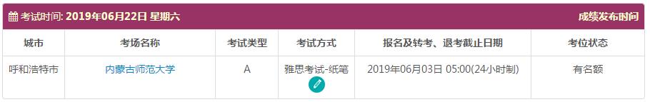 考试时间: 2019年06月22日 星期六