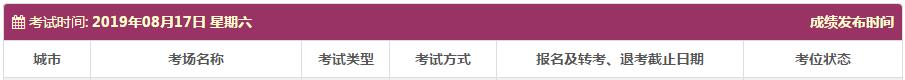 考试时间: 2019年08月01日 2019年08月10日 2019年08月17日 2019年08月24日