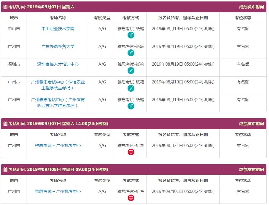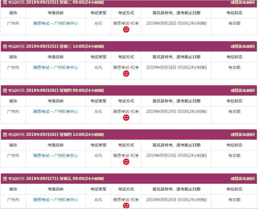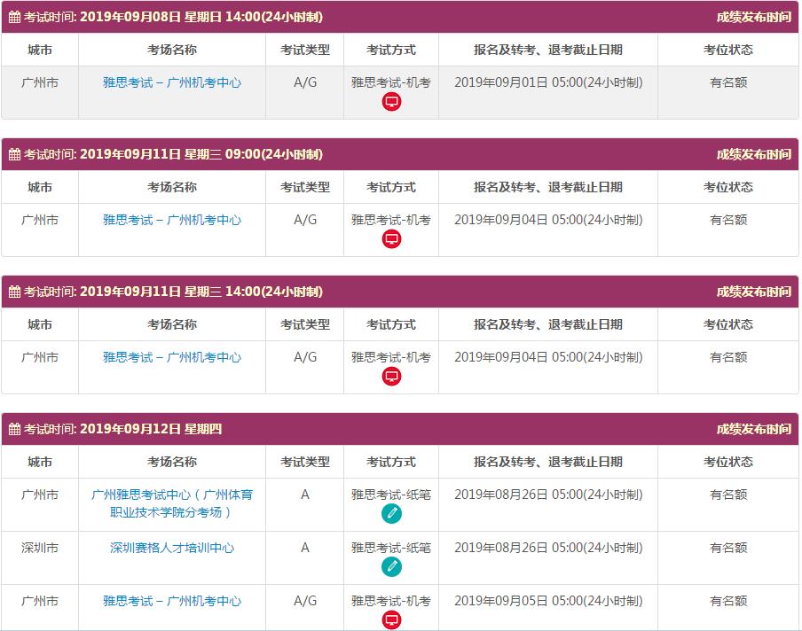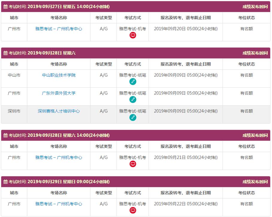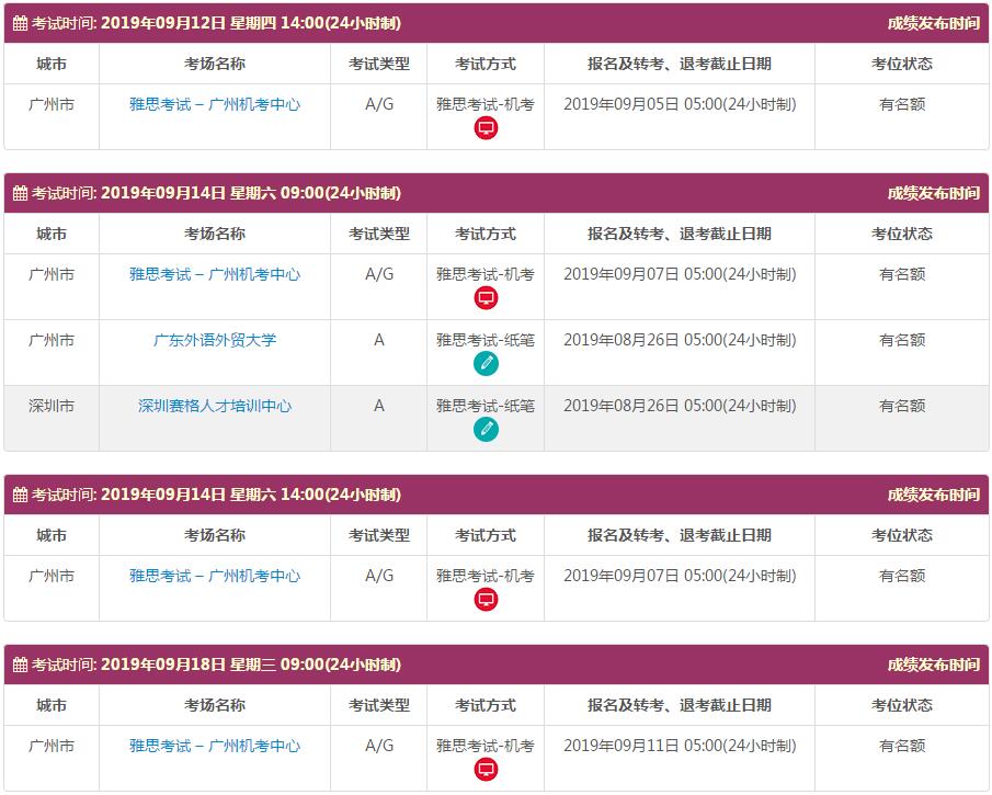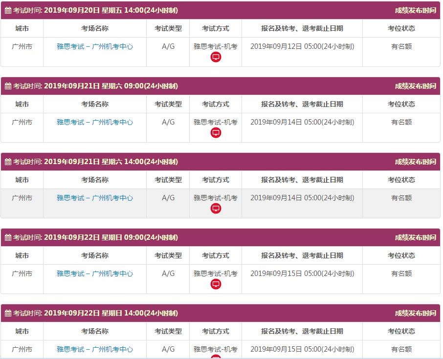 地点:雅思考试 – 广州机考中心 中山职业技术学院 广东外语外贸大学 深圳赛格人才培训中心 广州雅思考试中心(仲恺农业工程学院主考场) 广州雅思考试中心(广州体育职业技术学院分考场)