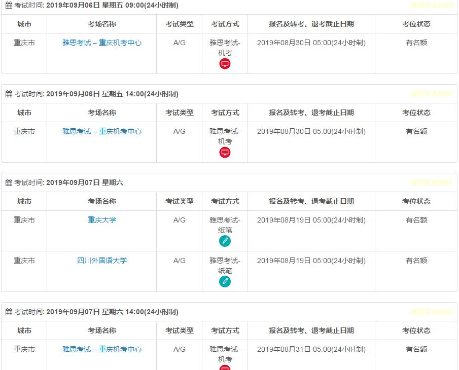 上海新航道雅思小编为同学们整理了关于2019年9月重庆雅思考点及考试时间详情以及路线等最新信息,