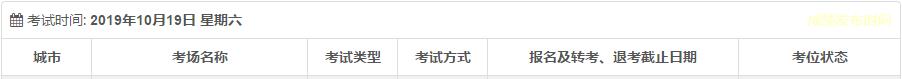 考试时间:2019年10月12日 2019年10月19日 2019年10月26日