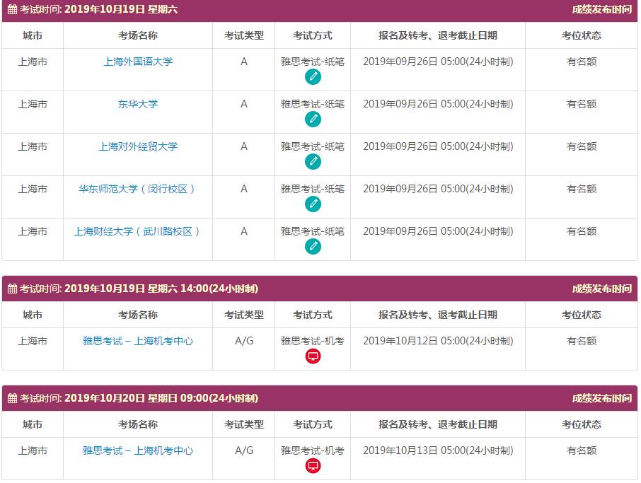 摘要:上海新航道雅思小编为同学们整理了关于2019年10月上海雅思考点及考试时间详情以及路线等最新信息,今天新航道雅思培训小编为大家一一介绍!