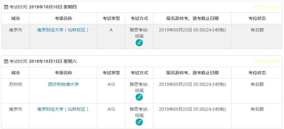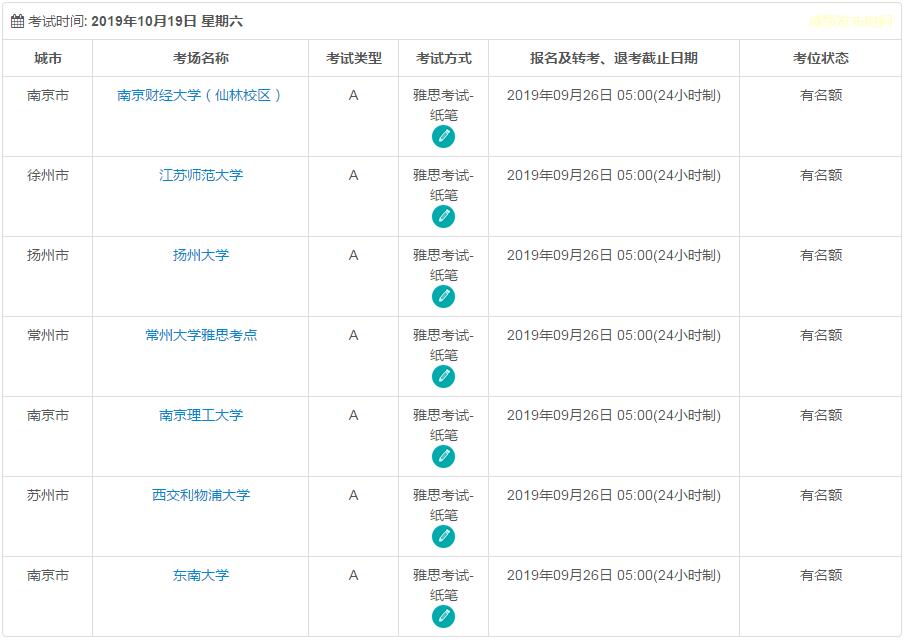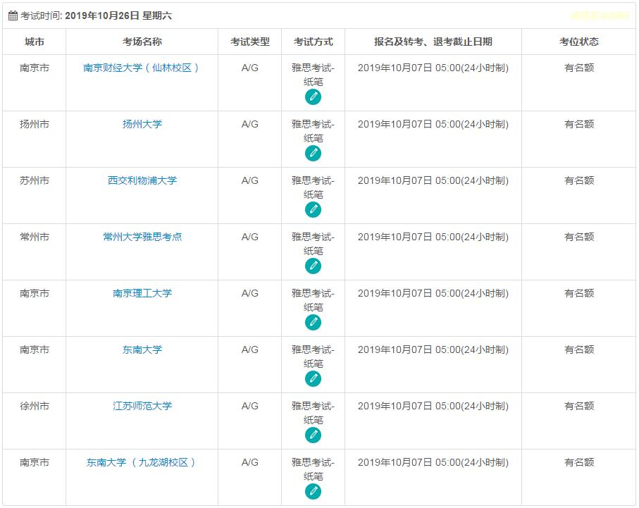考试时间:2019年10月19日 考试地点: 南京财经大学(仙林校区) 江苏师范大学 扬州大学 常州大学雅思考点 南京理工大学 西交利物浦大学 东南大学