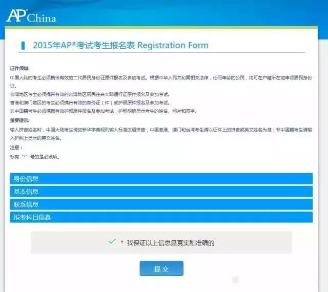 考生须确保所提交的信息是真实和准确的,然后提交。