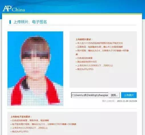 照片通过审核后,登录报名网站,将会看到如下提示。
