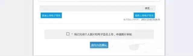 勾选页面底部的“我已完成个人照片和电子签名上传,申请照片审核”,将会把上传的个人照片和签名提交审核。