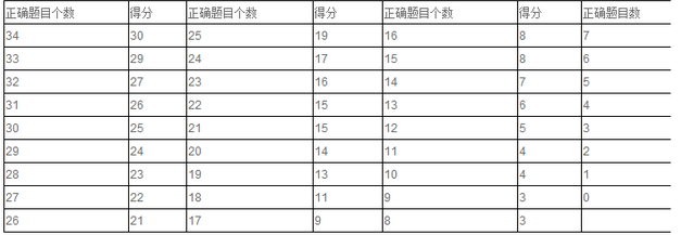 计算新托福阅读的分数,不要计算对多少题,而是算拿到多少原始分“Raw Point Total(0-45)”,然后再参照评分表,计算最后的分数(0-30)。