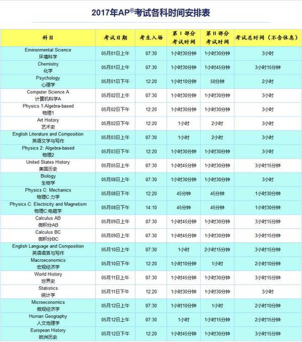 2017年AP考试将于12月12日0时起针对AP学校在校学生开放注册报名(中国大陆地区);社会考生报名会在AP学校在校学生报名基本完成后,于2017年1月2日开放注册报名。