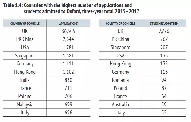 牛津大学这份官方录取数据详细介绍了2013—2017年五年的本科生录取情况,其中,中国学生的录取情况、学校的热门专业、亚裔表现等问题十分值得我们关注。