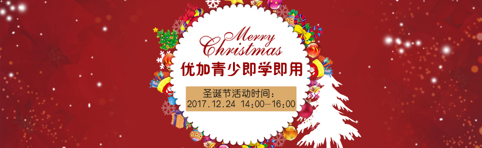 能在圣诞节亲手装扮一棵圣诞树,与喜爱的圣诞老人亲密接触;是多少孩子圣诞节的心愿;优加青少即学即用圣诞节活动,举办时间:12月24日14:00-16:00