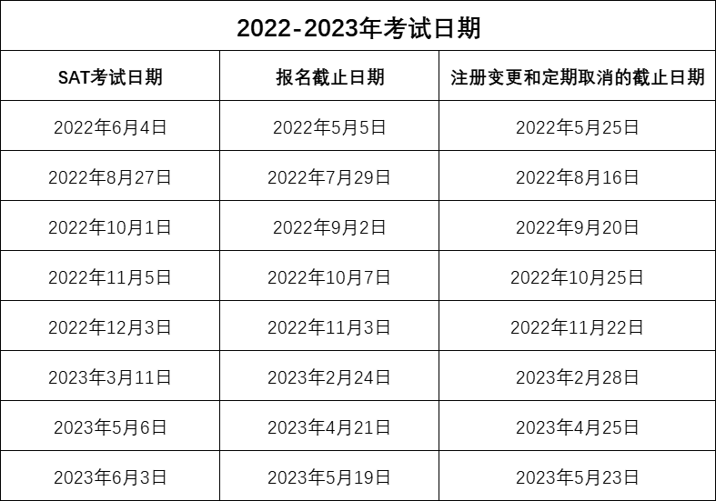 CB官方官宣了2022-2023年SAT的考试时间,平时College Board往往会在5月底或者是6月初放出,今年比往年稍微早了那么几天。