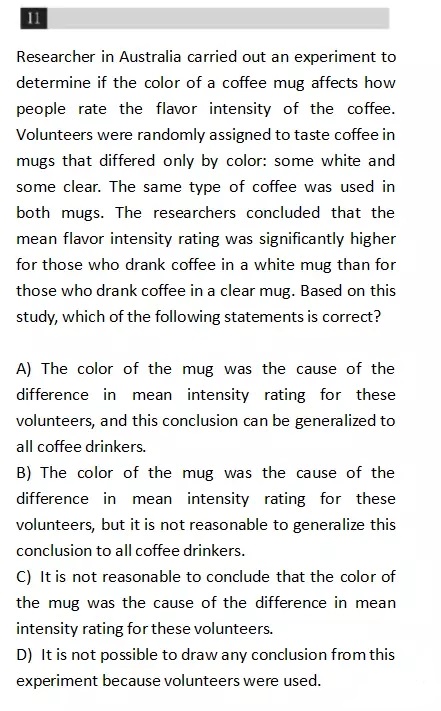 综合这两道例题,相信同学们已经能够掌握Sample Survey的要领了,弄清楚两个考点:1.generalize 2. cause and effect, 相信考试碰到这类的题目一定可以拿下!