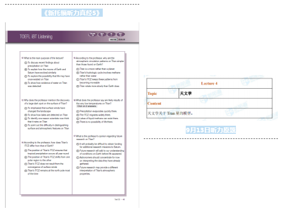 9月13日的托福考试,《新托福听力真经5》命中 2题,《新托福写作真经5》命中 1 题。