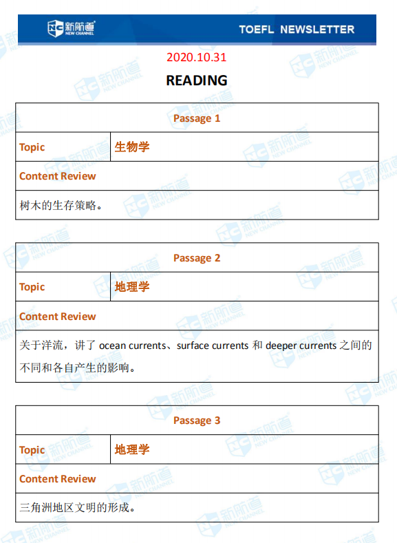 新航道小编第一时间推送本场考试的完整版考题回忆和解析。带你了解最新的考题详情,帮助小伙伴们更好的备战托福,祝宝宝们早日和托福分手!以下就是10月31日的托福考试。