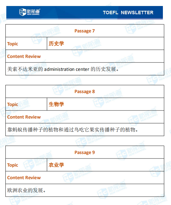 本场考试的阅读部分,主要考了生物学、地理学和农业学等方面的内容。