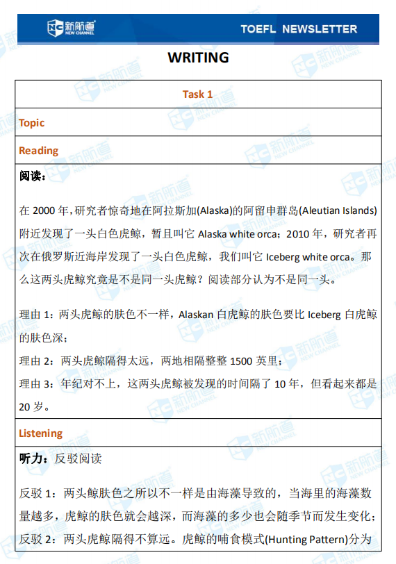 阅读部分:在 2000 年,研究者惊奇地在阿拉斯加(Alaska)的阿留申群岛(Aleutian Islands) 附近发现了一头白色虎鲸,暂且叫它 Alaska white orca;2010 年,研究者再 次在俄罗斯近海岸发现了一头白色虎鲸,我们叫它 Iceberg white orca。那 么这两头虎鲸究竟是不是同一头虎鲸?阅读部分认为不是同一头。