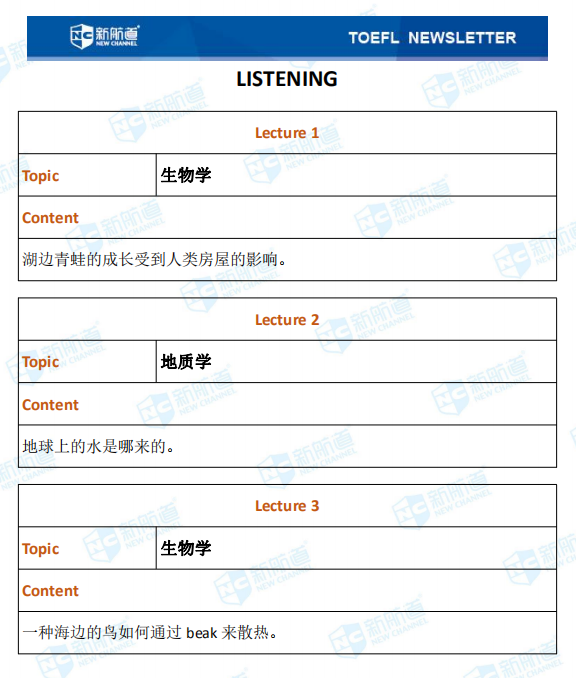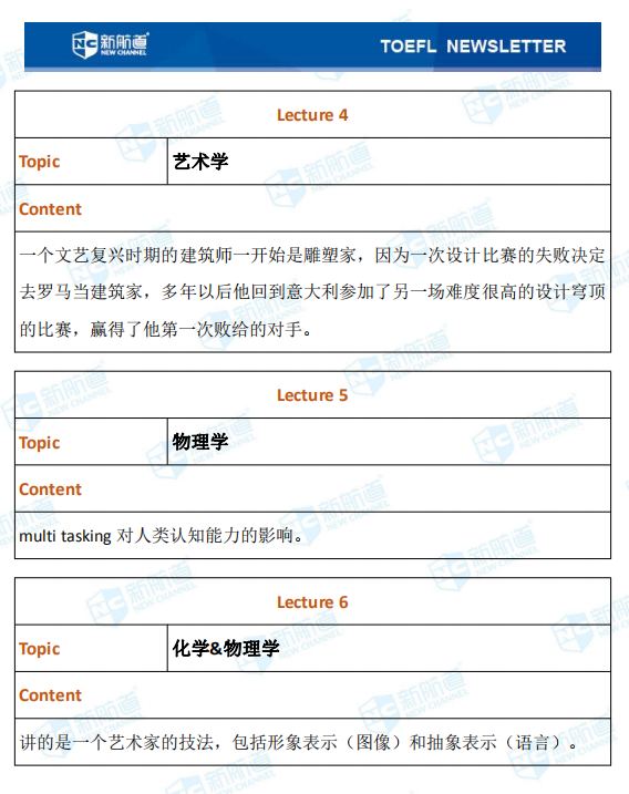 听力的lecture部分考了生物学、地质学、艺术学等等。