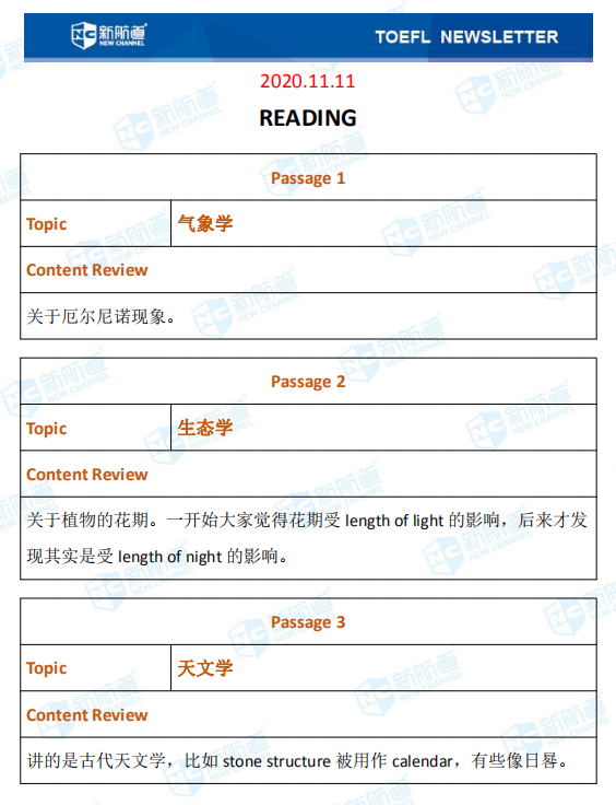 新航道小编第一时间推送本场考试的完整版考题回忆和解析。带你了解最新的考题详情,帮助小伙伴们更好的备战托福,祝宝宝们早日和托福分手!以下就是11月11日的托福考试。