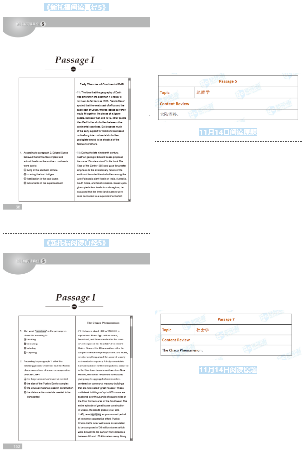 11月14日的托福考试,《新托福阅读真经5》命中 2题。