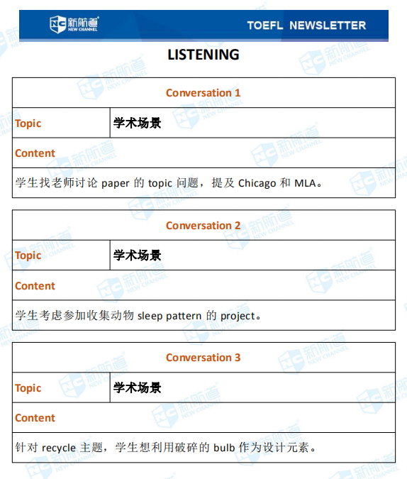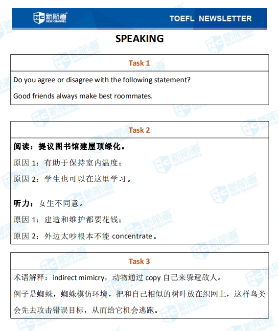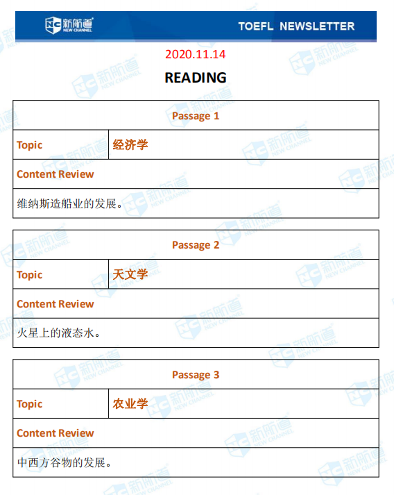 新航道小编第一时间推送本场考试的完整版考题回忆和解析。带你了解最新的考题详情,帮助小伙伴们更好的备战托福,祝宝宝们早日和托福分手!以下就是11月14日的托福考试。