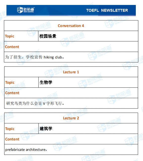 听力的lecture部分考了生物学、建筑学等等。
