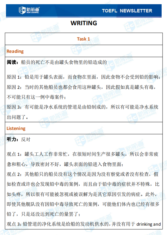 观点 2:其他船只的船员没有这个情况是因为没有察觉或者没有检查,假 如检查或许也会发现铅中毒的案例,而且由于铅中毒的症状并不特殊,比 如头疼,所以很有可能被忽视或被误解为是其它原因引发的病症。此外, 即使其他舰队没有因铅中毒导致死亡的案例,可能他们体内也已经有很多 铅了,只是还没达到死亡的量罢了;